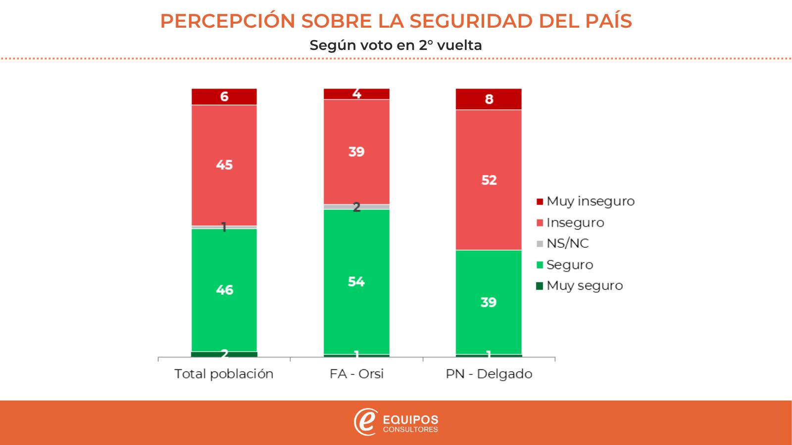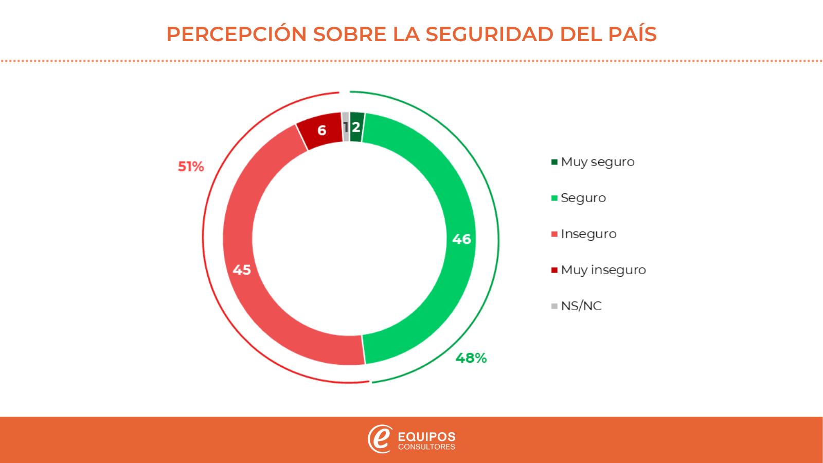 Opiniones divididas sobre seguridad del país. Los uruguayos se dividen en grupos casi equivalentes entre los que creen que el país es seguro, y quienes piensan que es inseguro, con leve saldo negativo. Son muy pocos los que manifiestan posiciones extremas. Tanto la sensación de que el Uruguay es “muy seguro” como la de que es “muy inseguro” son minoritarias.