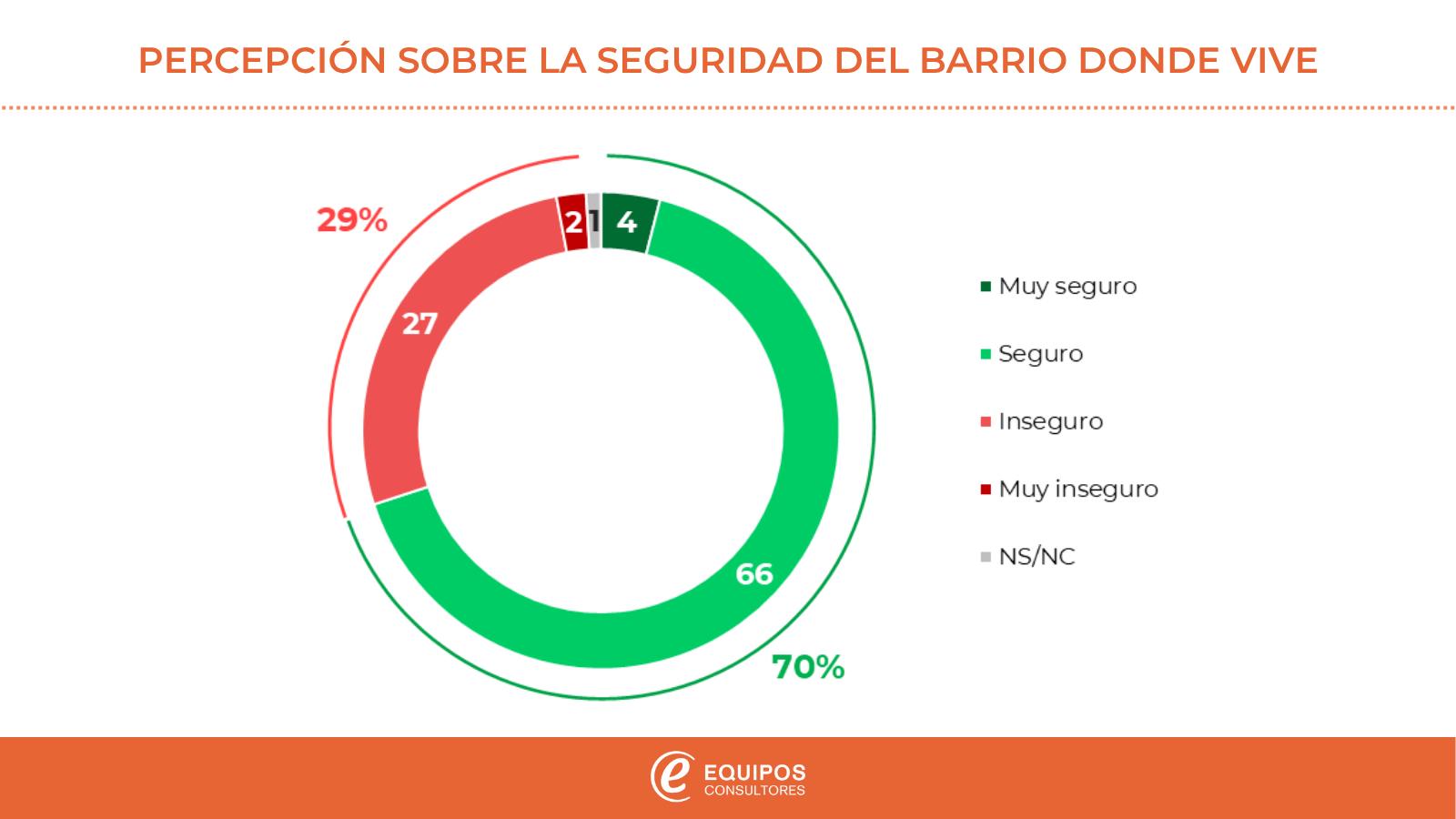 La política, en lo local, influye menos. Cuando se habla de seguridad del barrio de residencia, el sesgo político en las respuestas prácticamente desaparece. En este ámbito, las percepciones de seguridad son muy similares entre votantes del oficialismo y de la oposición.