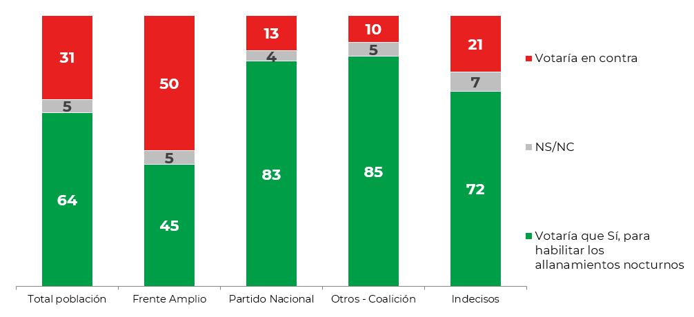 Gráfico 9. Preferencia en el plebiscito sobre allanamientos nocturnos según intención de voto