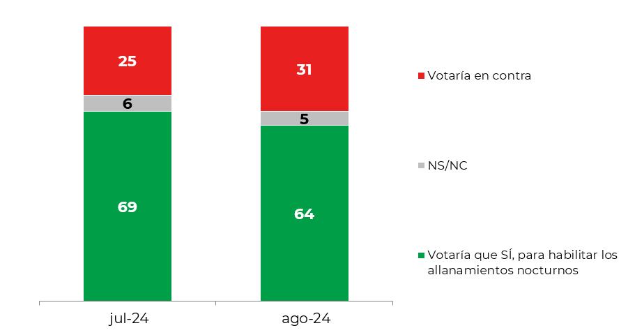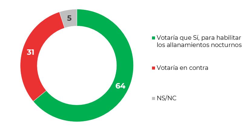 En torno al plebiscito para habilitar los allanamientos nocturnos, casi dos de cada tres uruguayos (64%) tiene una opinión favorable al mismo, mientras un tercio (31%) se manifiesta en contra.