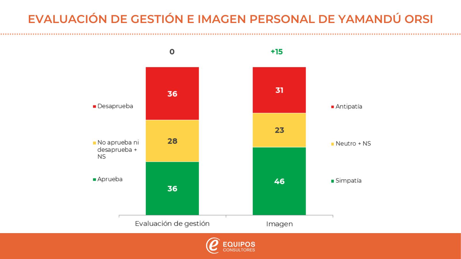 La aprobación a Orsi se mantiene incambiada respecto a la medición anterior, mientras que la desaprobación ha venido aumentando gradualmente desde el inicio de la gestión (4 puntos más que la medición anterior).