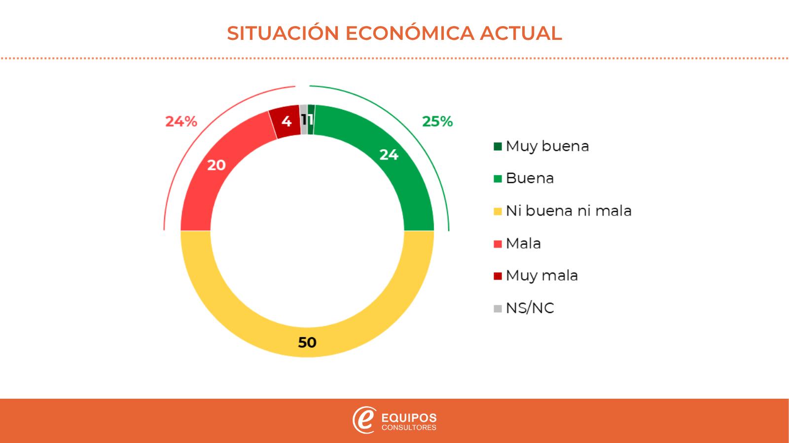 Los datos son algo menos positivos que en los meses anteriores. La mitad de la población califica la situación actual como “ni buena ni mala”, y hay opiniones divididas (con balance algo optimista) sobre el futuro.