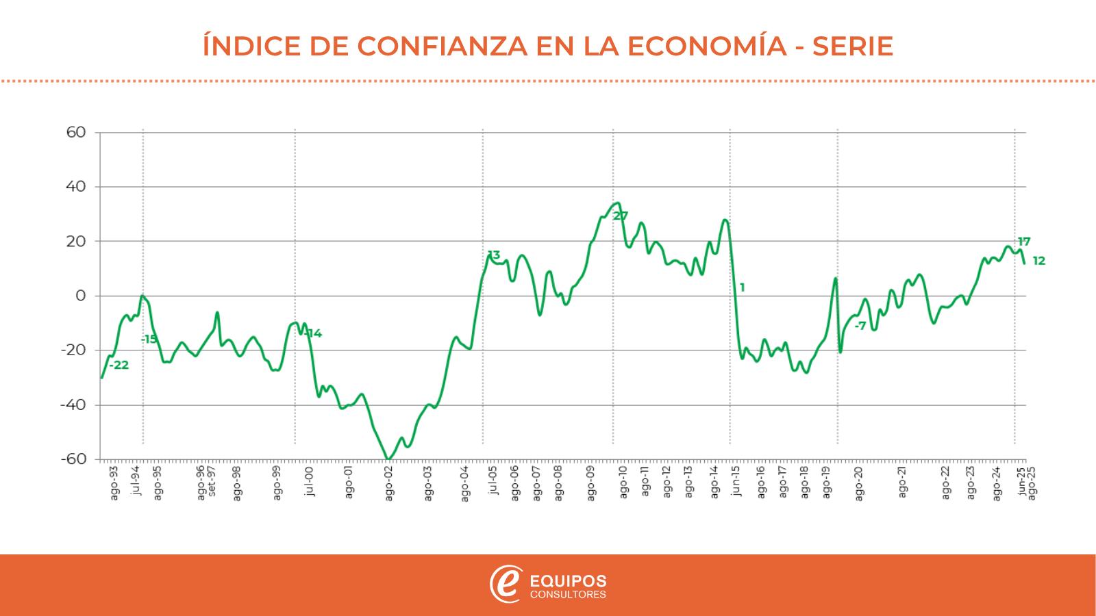 El Índice de Confianza en la Economía que elabora Equipos Consultores combinando las percepciones actuales y futuras se sitúa en 12 puntos positivos, 5 menos que en junio.
