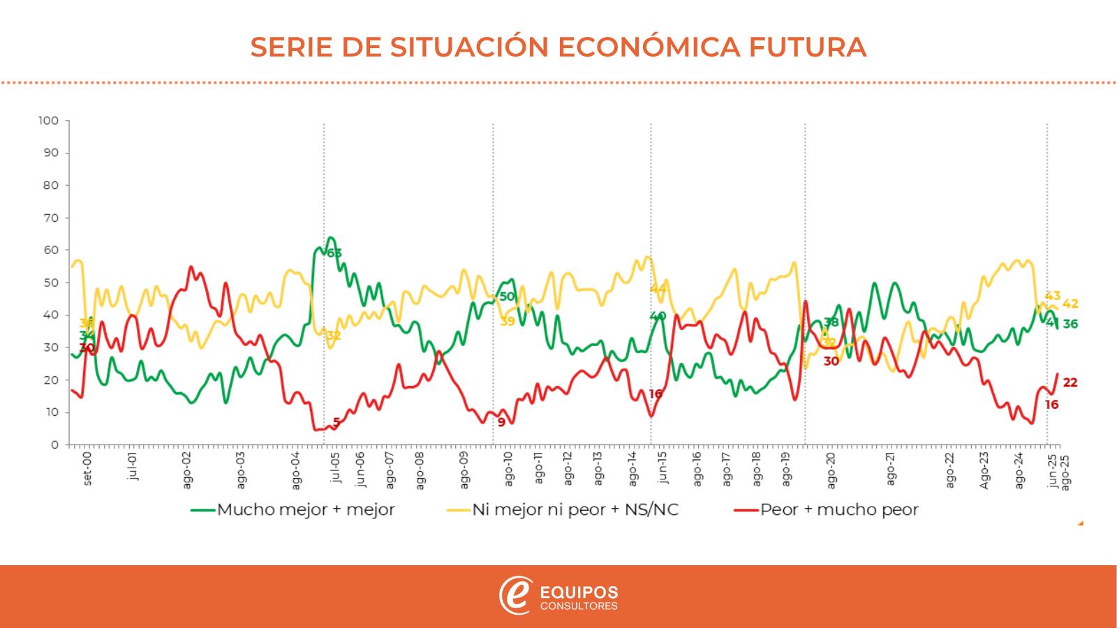 Los juicios sobre el futuro también presentan un escenario dividido, pero de saldo moderadamente favorable: los que creen que dentro de un año la economía estará mejor superan en 12 puntos a los que creen que estará peor.